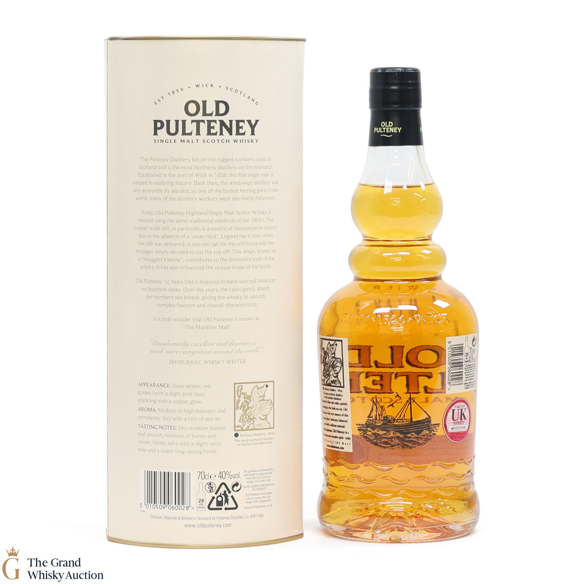 Old Pultney is known as the Maritime Malt due to the distillery's location in the very North of Scotland and this is honoured with the unique shape of the bottle.