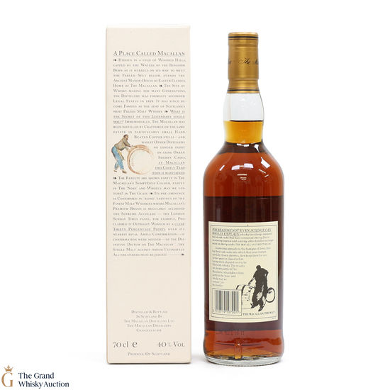 This single malt was distilled at the world-renowned distillery, Macallan, known for its sherry-seasoned cask finishes. It was matured for a total of 10 years in sherry casks prior to being bottled in the 1990s.