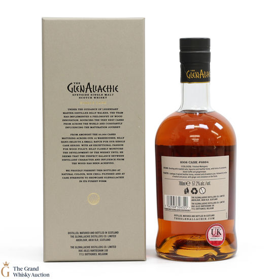 Glenallachie cask #6894 was filled in 2008 and matured for 14 years in a Chinquapin Barrel before being bottled in 2023.