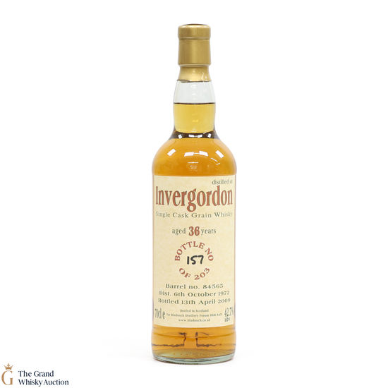 This is a Bladnoch Forum bottling of Invergordon. This single grain was distilled in 1972 and matured for 36 years in barrel #84565 prior to bottling in 2009.