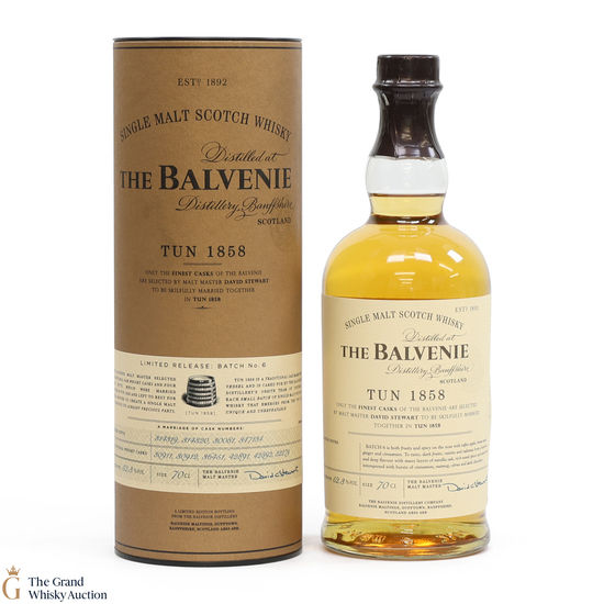 #314319, 314320, 30081, 347134 as well as sherry butts #30911, 30912, 36451, 42891, 42892, 32279 which were selected by Balvenie's Malt Master David Stewart. Batch number 6 is a limited release bottled at an ABV of 52.3%.