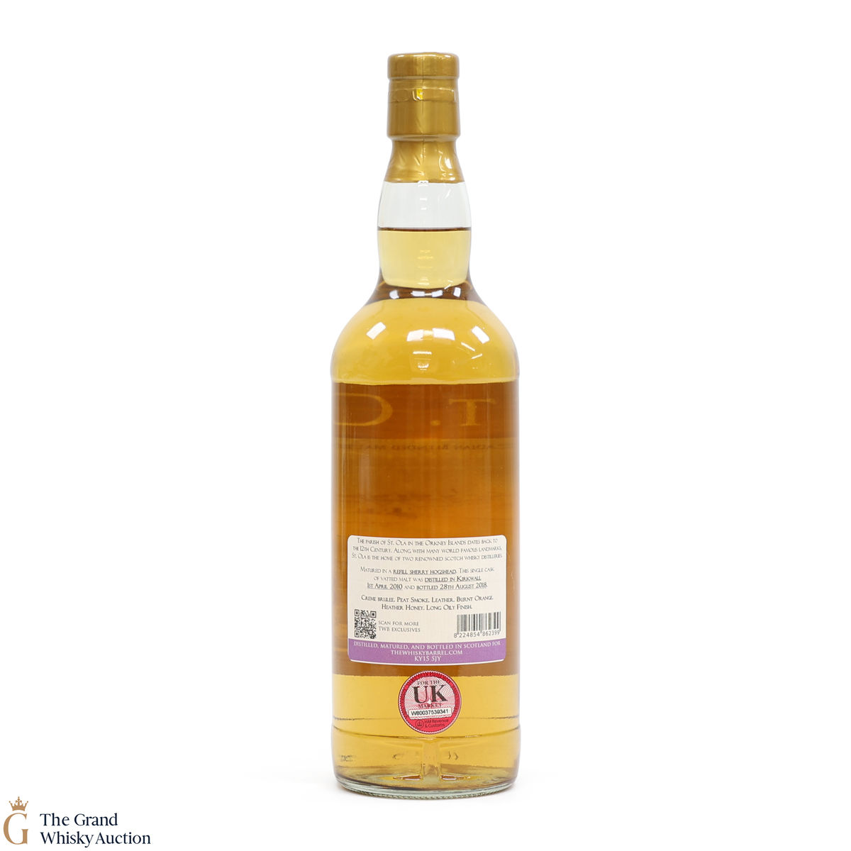 This blended Orcadian malt was matured in a refill sherry hogshead, this single cask of vatted malt was distilled in Kirkwall 1st April 2010 and bottled 28th August 2018 for The Whisky Barrel Ltd.