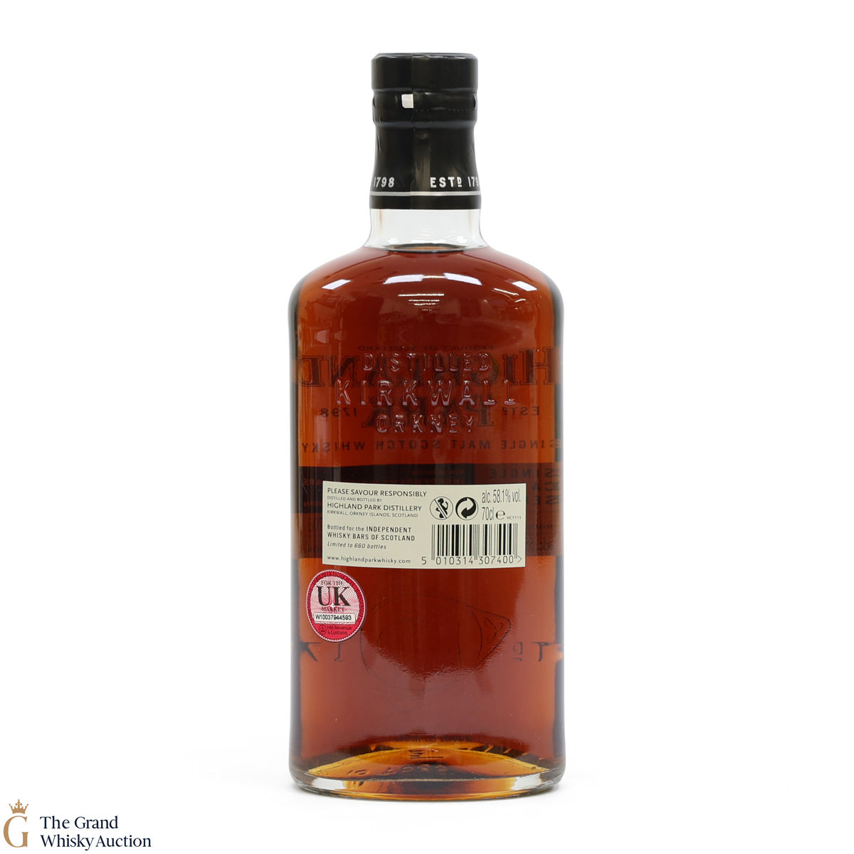 This bottling is part of Highland Park's Single Cask Series and was bottled exclusively for Independent Whisky Bars of Scotland. Distilled in 2003, this single malt was matured for 15 years in 1st fill European Sherry Oak Puncheon #1306 and bottled at the cask strength of 58.1% ABV in 2018.