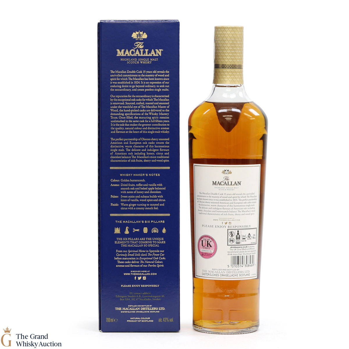 This 15 Year Old Macallan was matured in a combination of American and European Sherry oak for a minimum of 15 years. It is part of the Macallan Double Cask range, which marries the classic Macallan style and the sweetness of American oak.