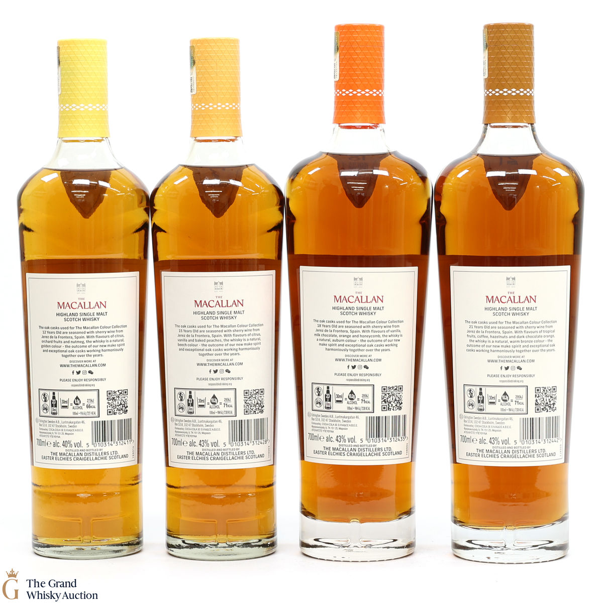 The return of the age statement honours these distinctive global travel exclusive releases. The Colour Collection is a range of exceptional whiskies, celebrating two pillars on which The Macallan legacy is built: Natural Colour and Sherry Seasoning. It is composed of 12,15,18,21 and 30-year-old expressions.