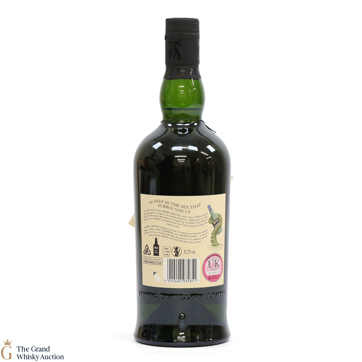This is a committee exclusive release of the Ardbeg Kelpie, a single malt released in 2017. It was matured in casks made from virgin Black Sea oak and more traditional bourbon casks. The Committee Release is bottled at the higher strength of 51.7% ABV (while the standard Ardbeg Kelpie has bottled at 46% ABV).