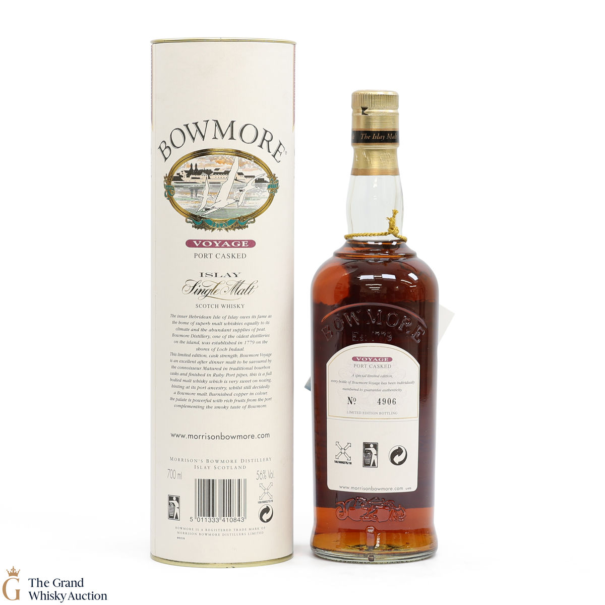 The Bowmore voyage is a non-aged statement Bowmore matured in bourbon casks before being finished in port pipes. Released in 2000 and individually numbered.