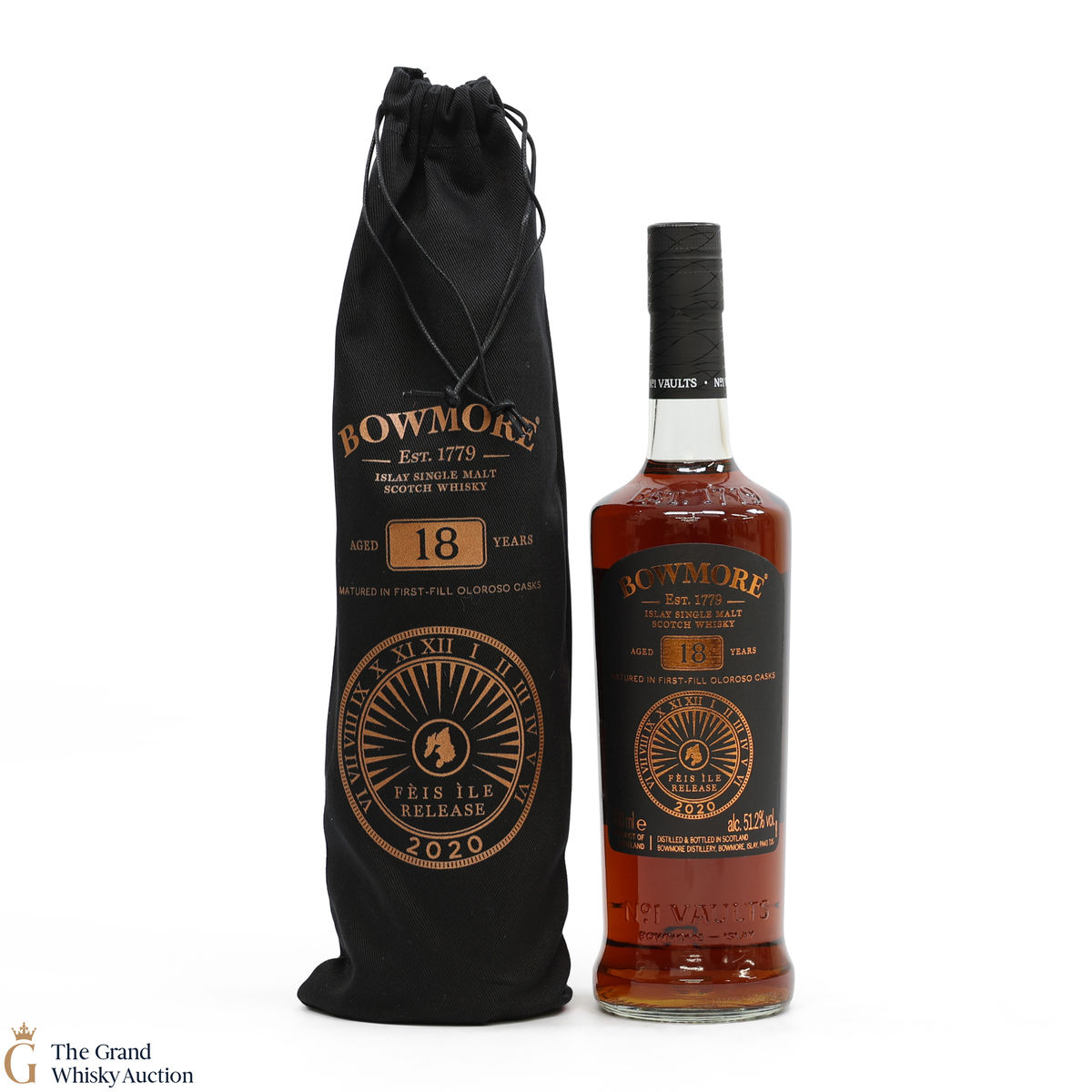 This is the Feis Ile 2020 release from Bowmore Distillery. Matured in a first-fill Oloroso Sherry cask for 18 years, this single malt was bottled at 51.2% ABV. This rare annual release from Bowmore is limited to just 3000 bottles.