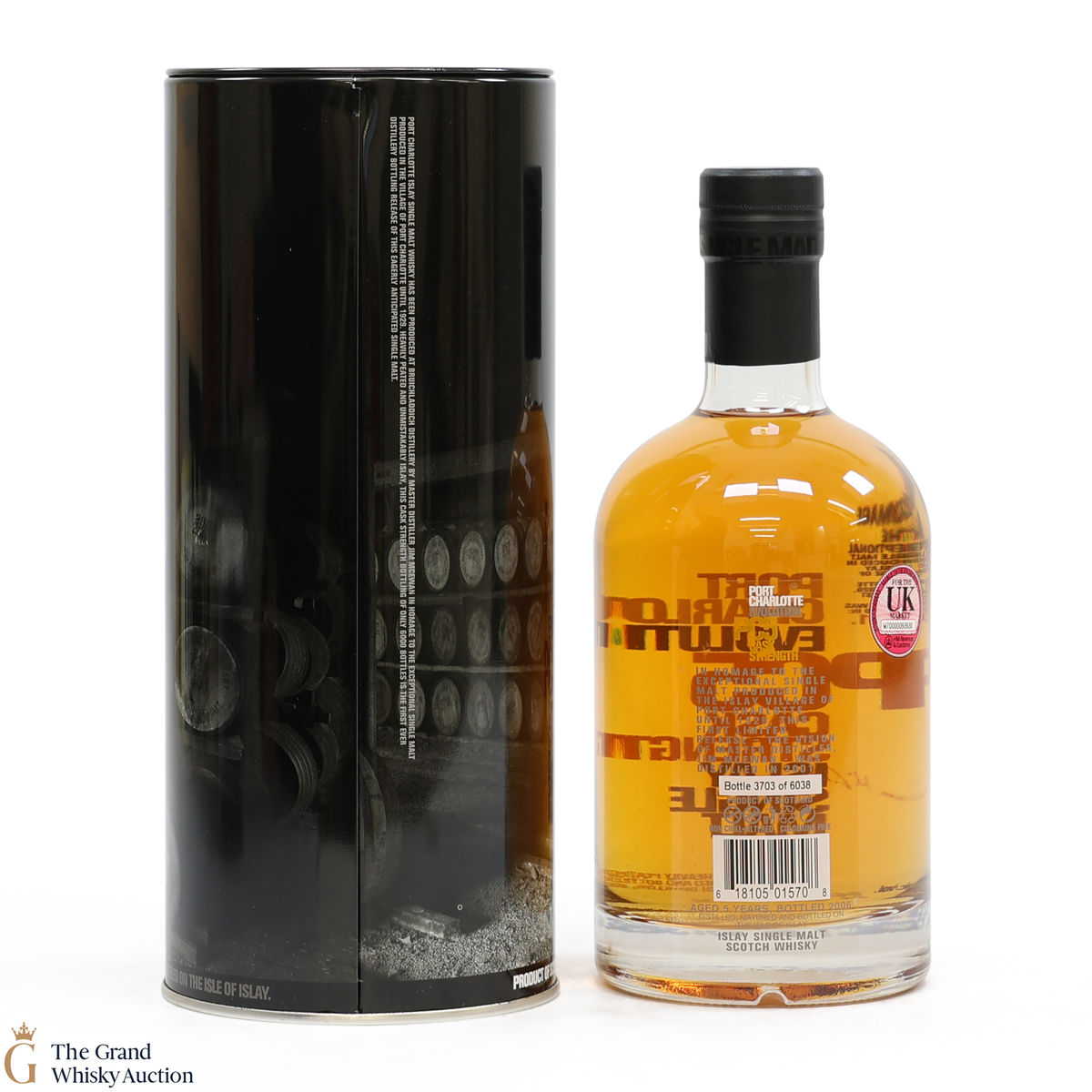 Port Charlotte PC5, produced by Bruichladdich Distillery, is a heavily peated spirit. It was the first release of heavily peated Port Charlotte and was produced in 2001 from some of the first spirits to be produced after the distillery's reopening. The single malt was bottled at 5 years old in 2006 and was limited to 6038 bottles.