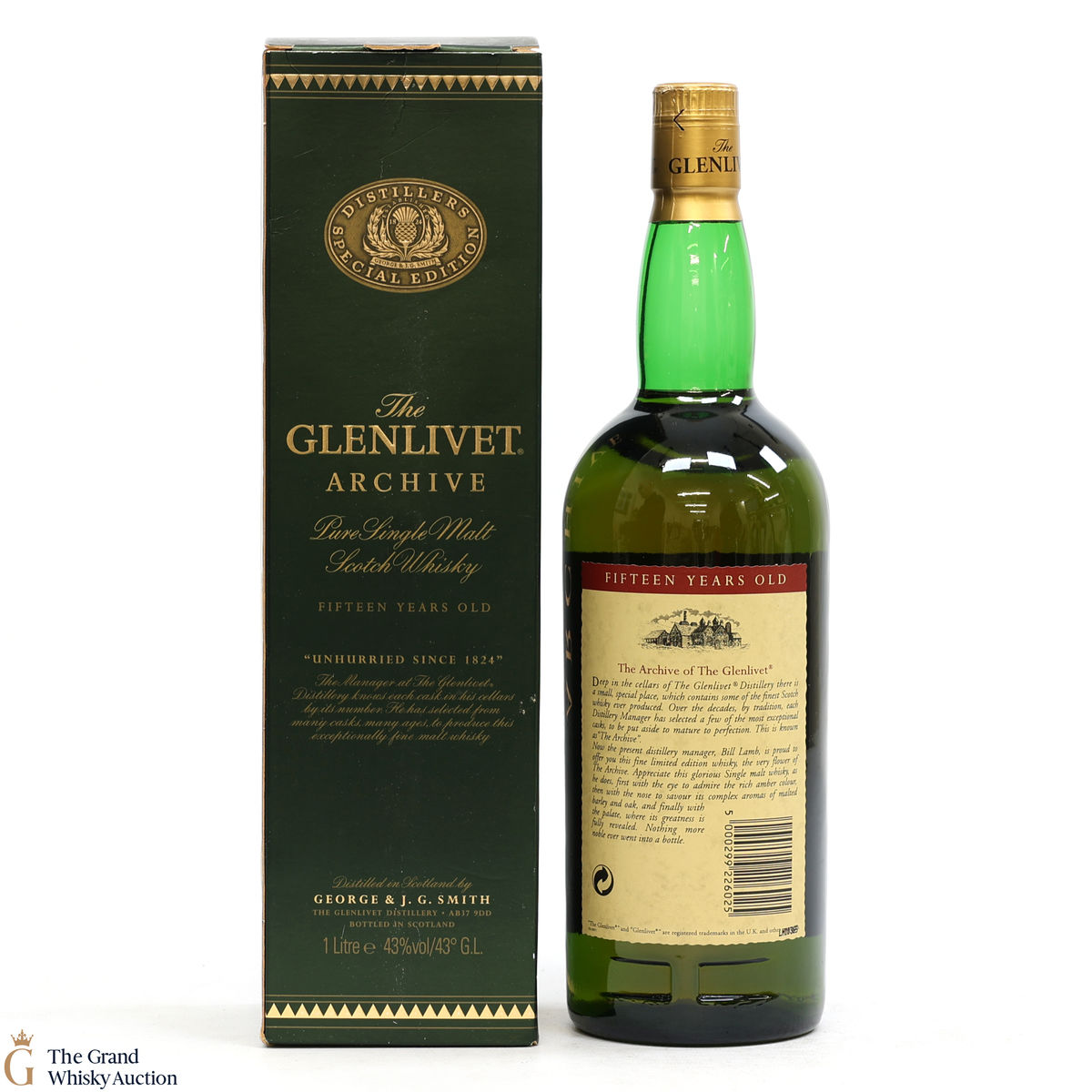 This discontinued Special Edition Glenlivet Archive Single Malt is a 15-year-old Scotch Whisky. Glenlivet Archive is a batch-release, single malt whisky only using carefully hand-selected casks.