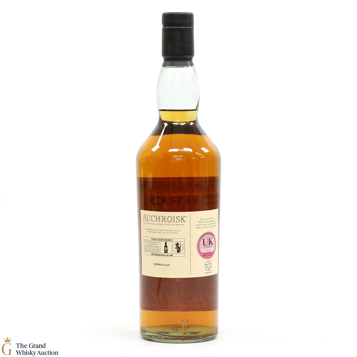 Due to the various ages of bottles and their seals, the condition of liquid is at the buyer's discretion and no claim can be lodged against failure/leakage in transit. Loss and breakage cover is available at 3% of the hammer price as standard. If the lot is not insured, no claim can be lodged against the courier or The Grand Whisky Auction for breakage or loss in transit.