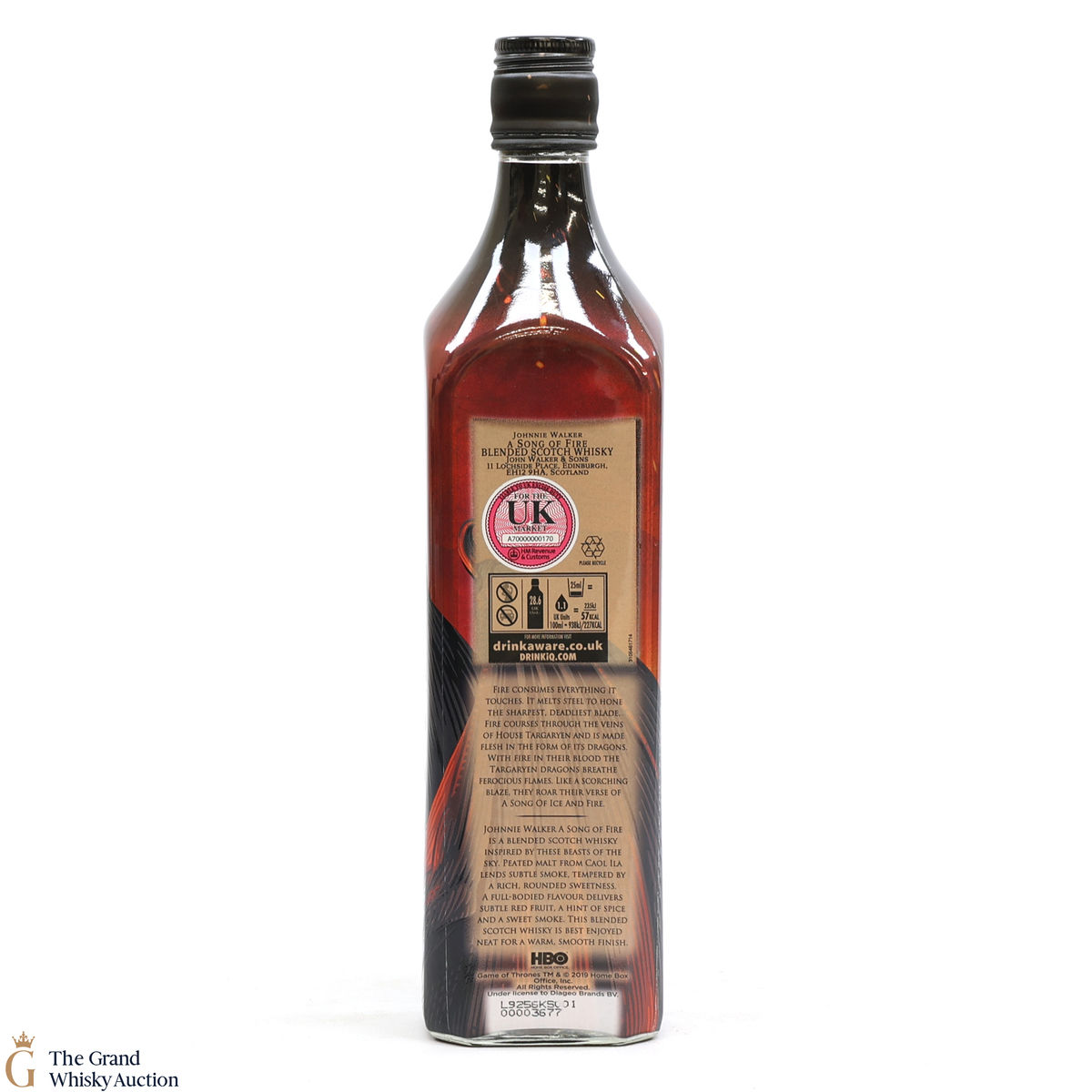 A limited-edition celebration and ode to Game of Thrones, Johnnie Walker A Song of Fire. The subtle notes of the smoke and peated malts from the Caol Ila distillery within the blend pay homage to the Dragons of House Targaryen.