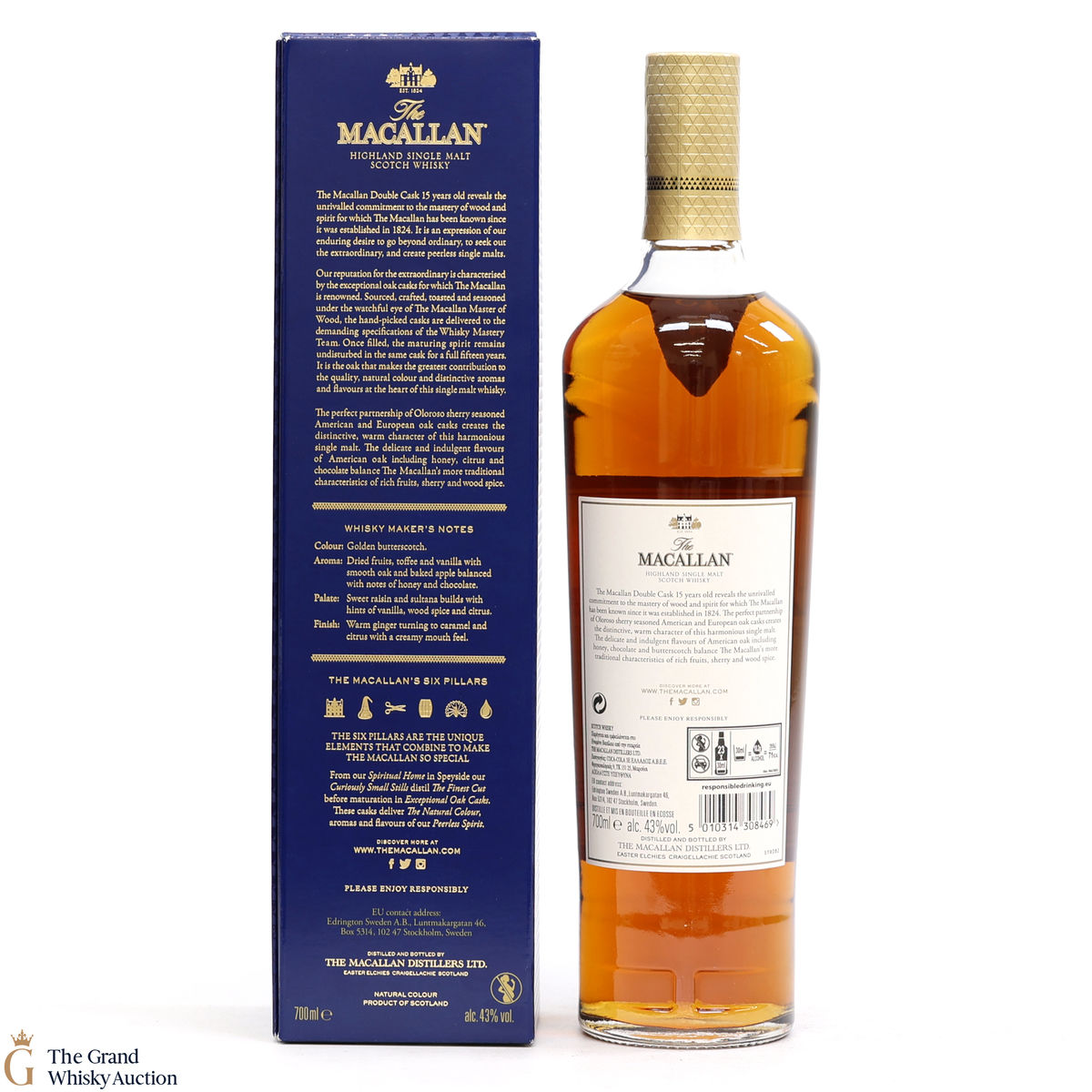 This 15 Year Old Macallan was matured in a combination of American and European Sherry oak for a minimum of 15 years. It is part of the Macallan Double Cask range, which marries the classic Macallan style and the sweetness of American oak.