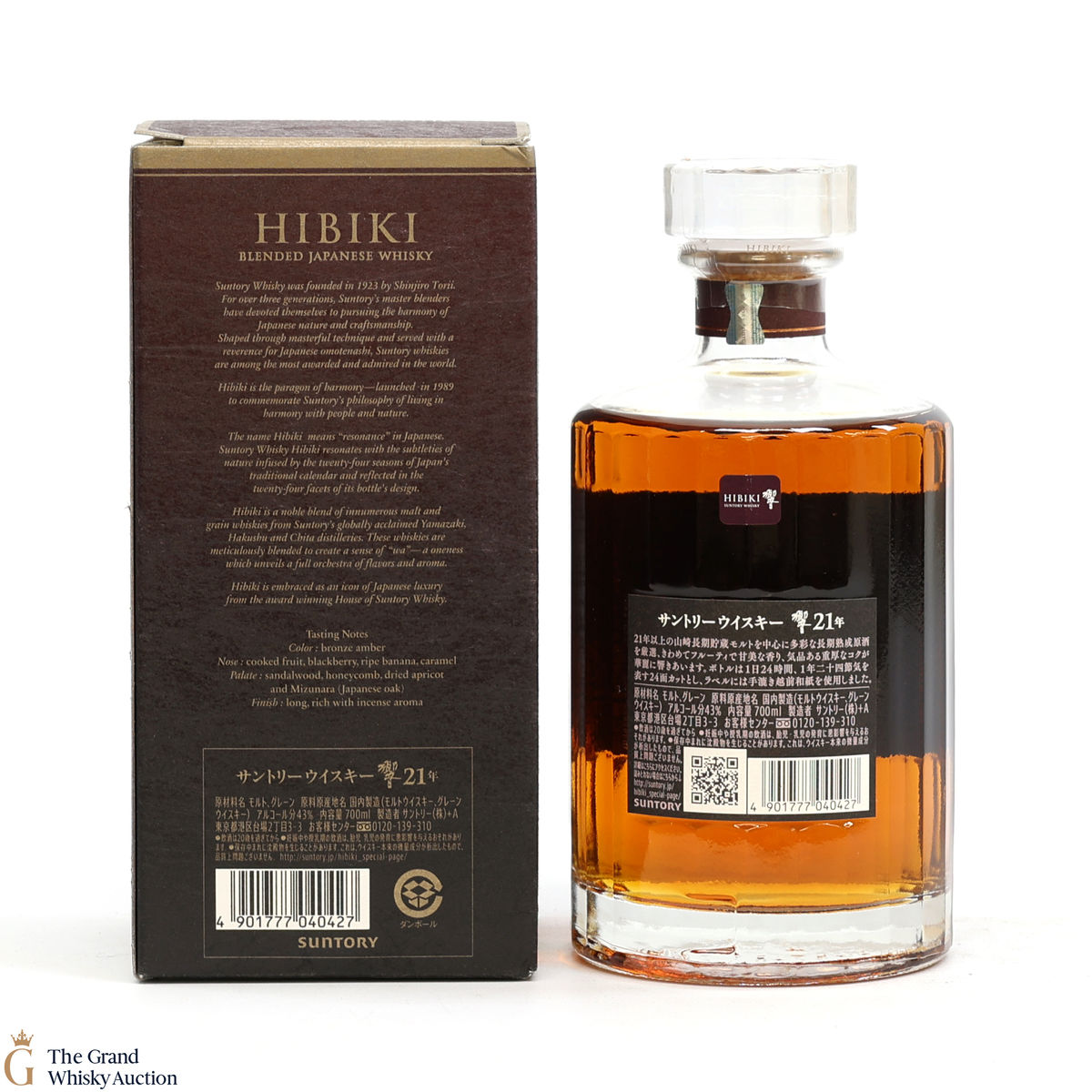 Hibiki 21 Year Old is a very popular blended whisky from Suntory. It is made up of a blend of specially selected mature malt and grain whiskies aged over 21 years. The key Yamazaki sherry casked malt is vatted with other carefully chosen mellow unblended grain whiskies over 21 years old.