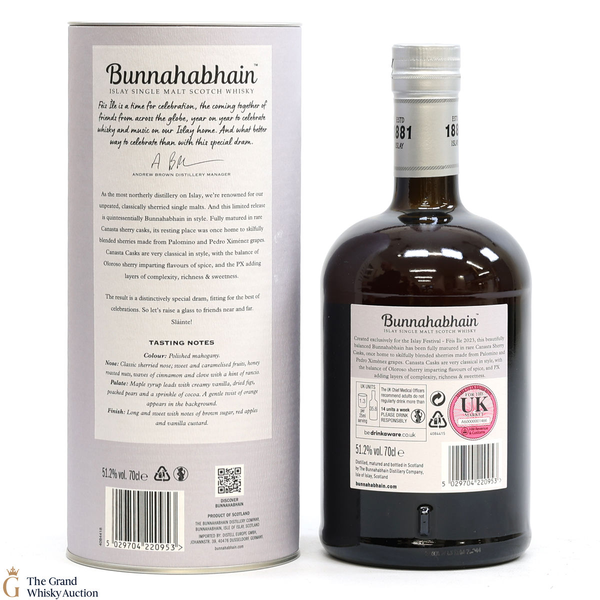 One of the releases for Fèis Ìle 2023, this dram was fully matured in rare Canasta sherry casks which were previously home to skillfully blended sherries made from Palomino and Pedo Ximénez grapes.