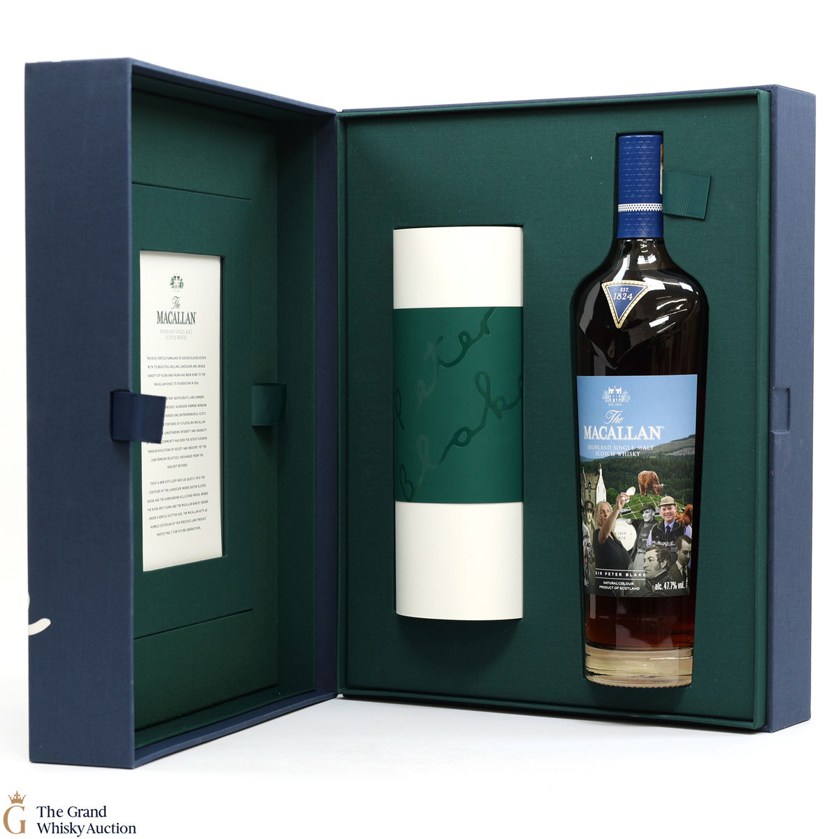 Along with this unique bottle of whisky is a scroll of artwork showing Sir Peter Blake's distinct style and a certificate detailing the history and heritage on which Sir Peter's art was based. There is also a piece of tracing paper which provides information on each character from The Macallan's history that Sir Peter chose to include in his art.