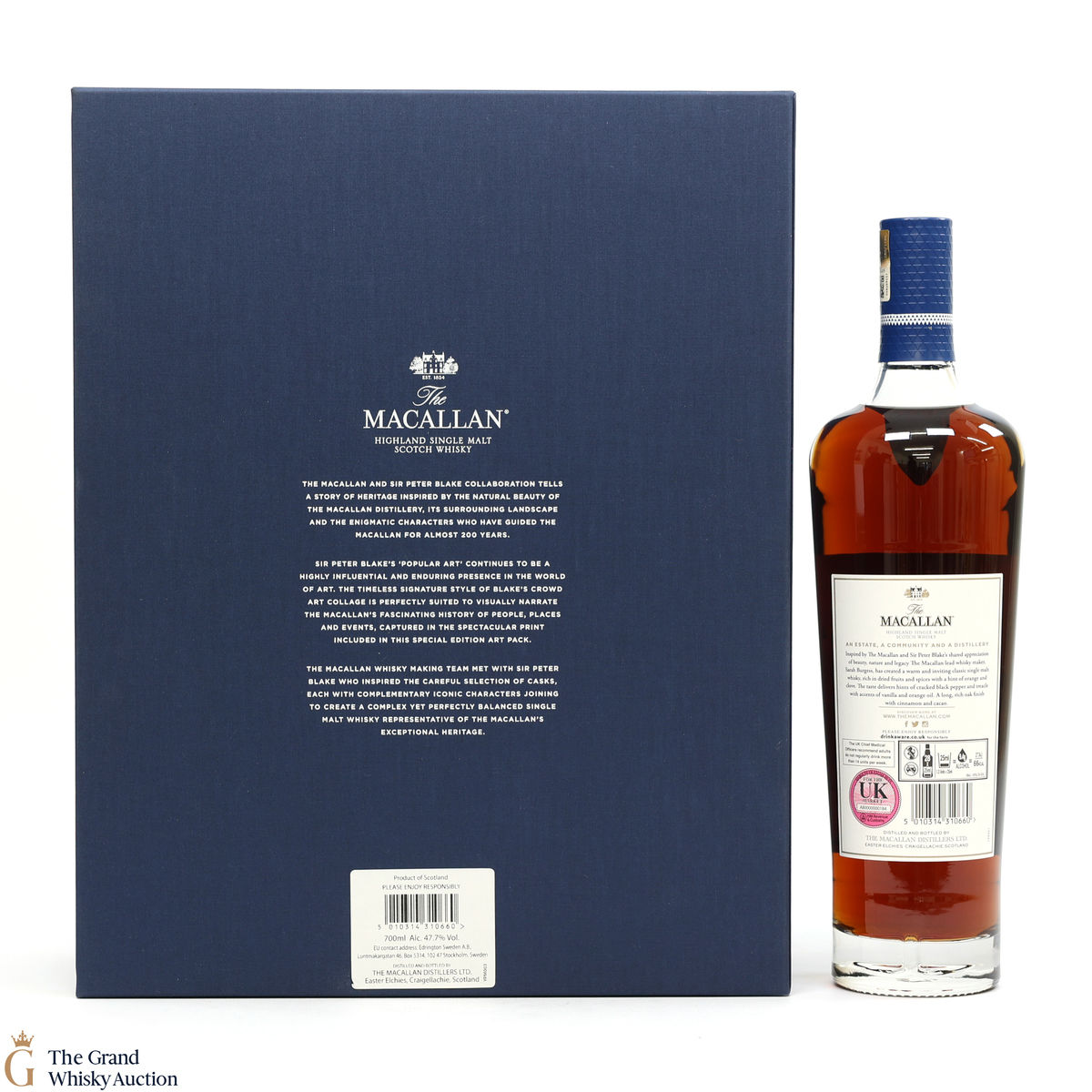 Part of The Anecdotes of Ages Collection, this is an extraordinary art and whisky collaboration with Sir Peter Blake. Being the third collaboration between the Macallan Distillery and Sir Peter Blake, this single malt was created to commemorate Sir Peter Blake's visit to The Macallan Estate. An Estate, a Community and a Distillery tells the story of some of the colourful characters from the distilleries' past and present and features a label designed by Sir Peter Blake.
