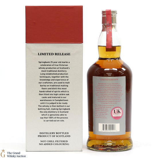 A very limited release from the Campbeltown distillery Springbank. Bottled in 2022 this 25 Year Old was bottled at 46% ABV and is one of only 1,300 bottles. This bottling has been made up from a combination of casks; 40% bourbon casks, 60% sherry casks.