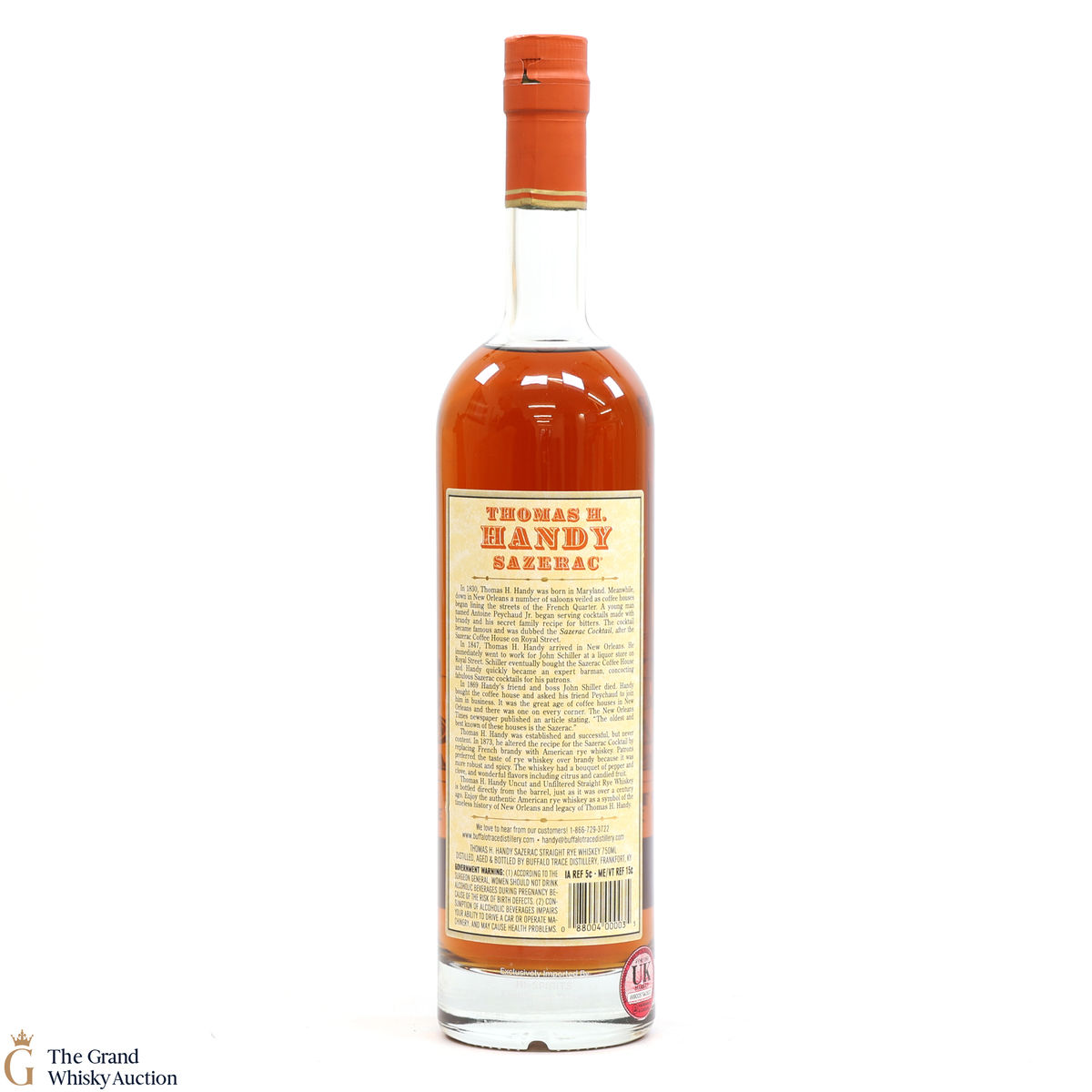 This collection is dubbed the antique collection and celebrates famous figures. The companies founder, Thomas H. Handy, is on the front of this bottle with the picture of the Sazerac Coffee House where everything started.