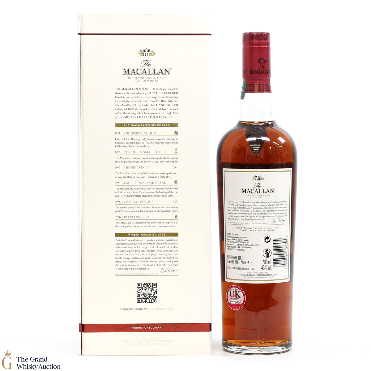 The Macallan 1824 Series celebrates natural colour. The most distinctive and defining characteristic of Macallan is the sherry-seasoned oak casks that are used to mature the whisky. This series shows commitment to 100% natural colour, drawn from wood. The colour of each expression becomes deeper as the range progresses.