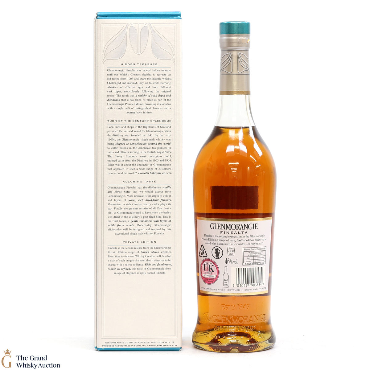 Finealta is the second in Glenmorangie's series of Private Editions (following Sonnalta). Finealta was produced using some lightly peated barley. The name is Gaelic for 'Elegance' and it was matured in ex-sherry & plain new American oak casks.