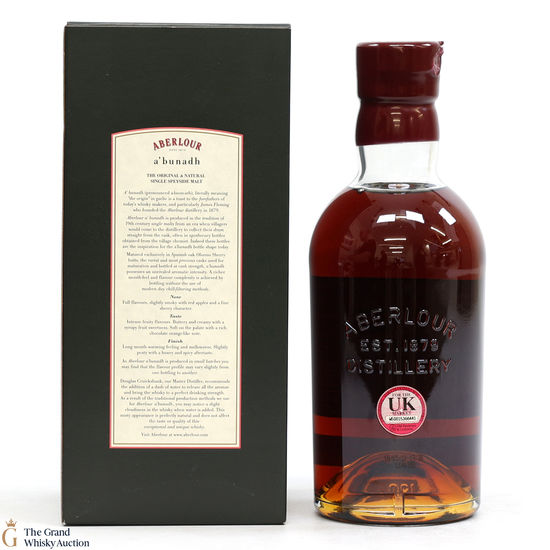 Meaning 'of the origin' in Gaelic, A'bunadh is made in homage to Aberlour's founder, James Fleming. This is batch No. 31 of the popular A'Bunadh single malt. It has been matured in Spanish Oloroso sherry butts and bottled at cask strength at 60.5% creating a dark luxurious whisky.