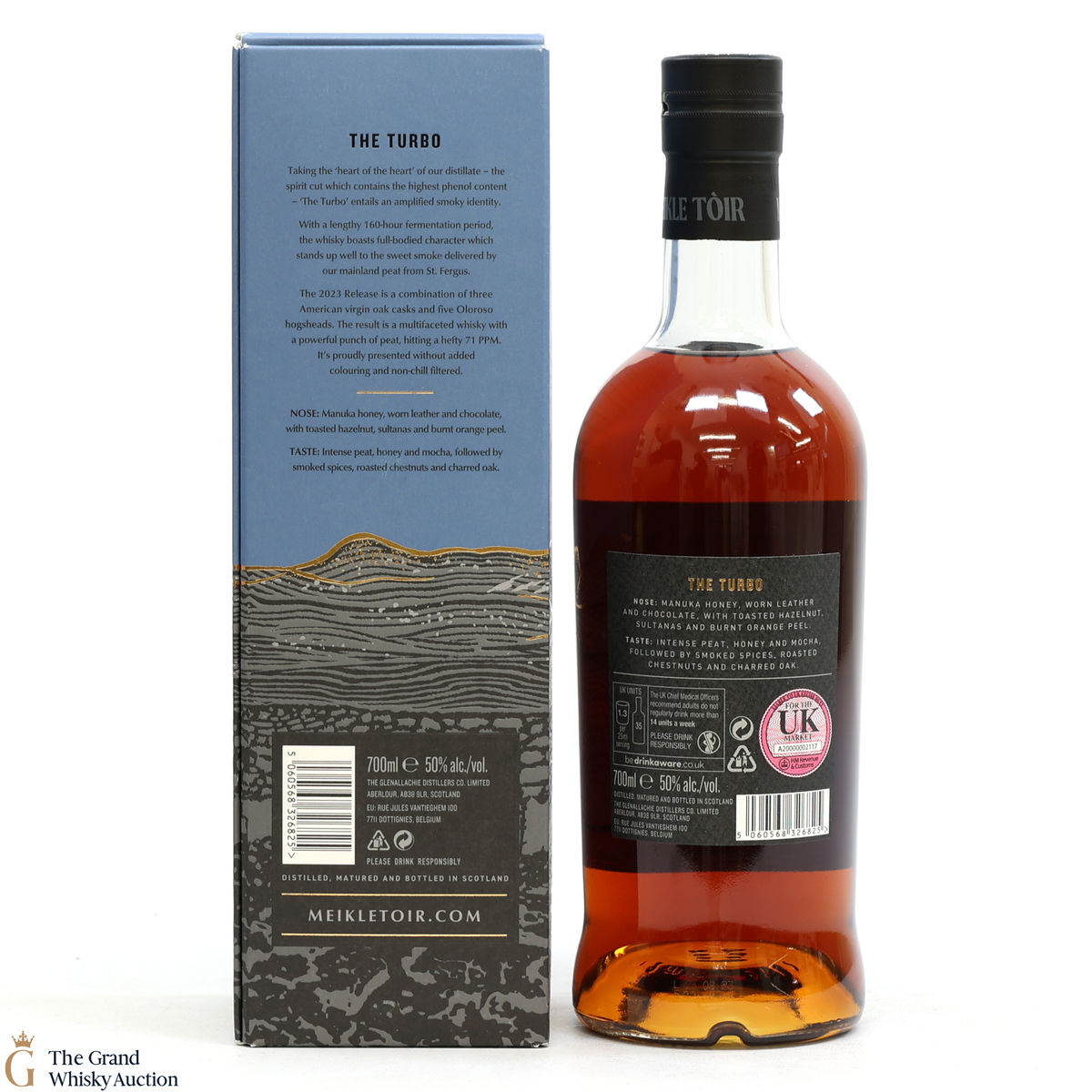 From the Meikle Tòir series made at GlenAllachie Distillery, The Turbo is named after the spirit cut which contains the highest phenol content, so expect a powerful peaty whisky. St. Fergus mainland peat was used to dry the barley at 71ppm before the whisky was matured in a combination of three medium-toasted and medium-charred American virgin oak casks and five first-fill oloroso hogsheads. It was bottled at 50% ABV.