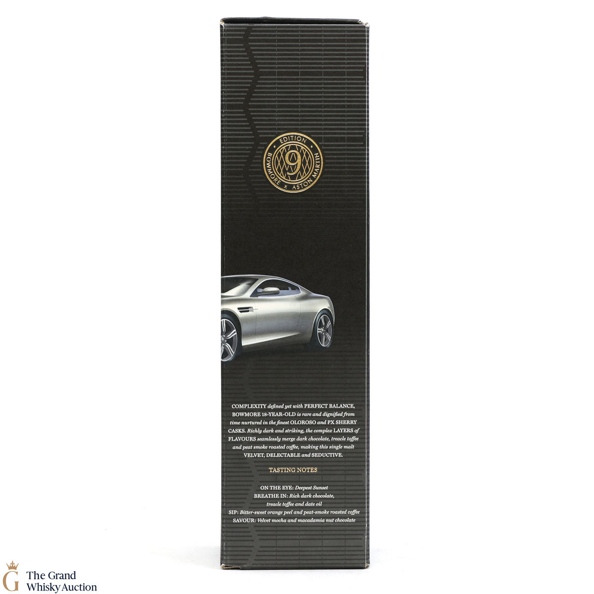Edition 9 of the Bowmore x Aston Martin collaboration celebrates the iconic Aston Martin DB9 (2003). DB9 aligns perfectly with the balance and depth of this Bowmore 18-year-old. This single malt has a rich maturity from the depth of Oloroso & Pedro Ximénez sherry casks.