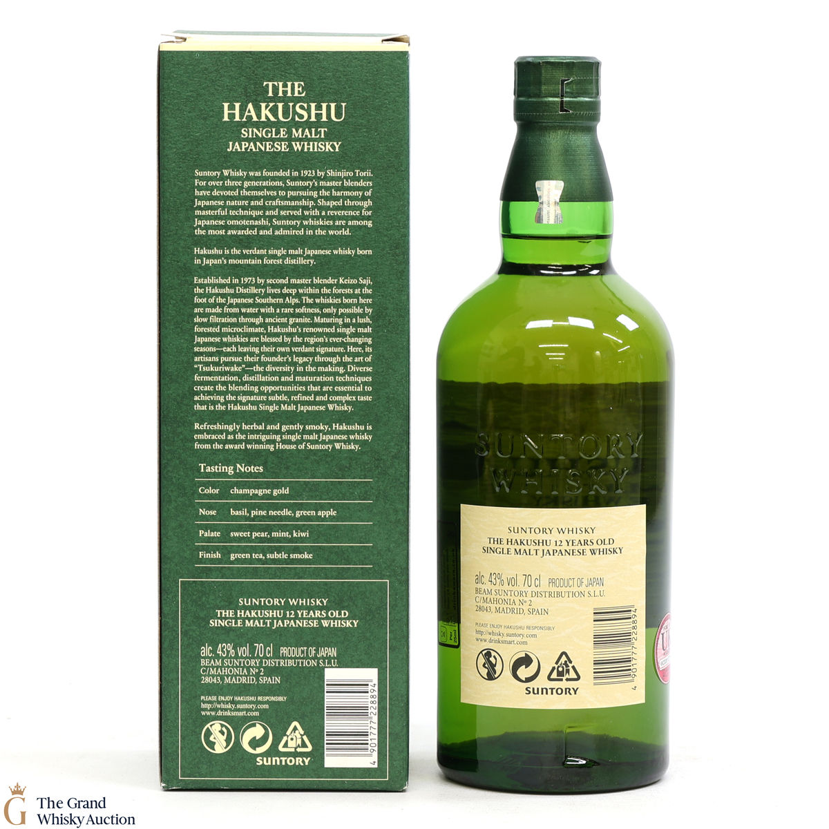 This is a 12-Year-Old expression from the Hakushu distillery, which lies in the foothills of Mount Kaikomagatake.
