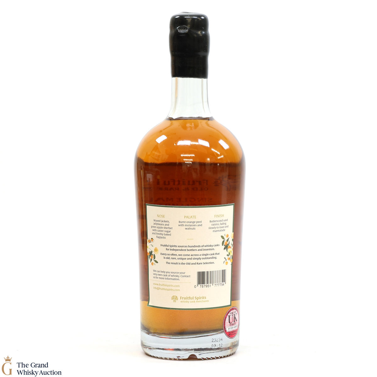 Due to the various ages of bottles and their seals, the condition of liquid is at the buyer's discretion and no claim can be lodged against failure/leakage in transit. Loss and breakage cover is available at 3% of the hammer price as standard. If the lot is not insured, no claim can be lodged against the courier or The Grand Whisky Auction for breakage or loss in transit.