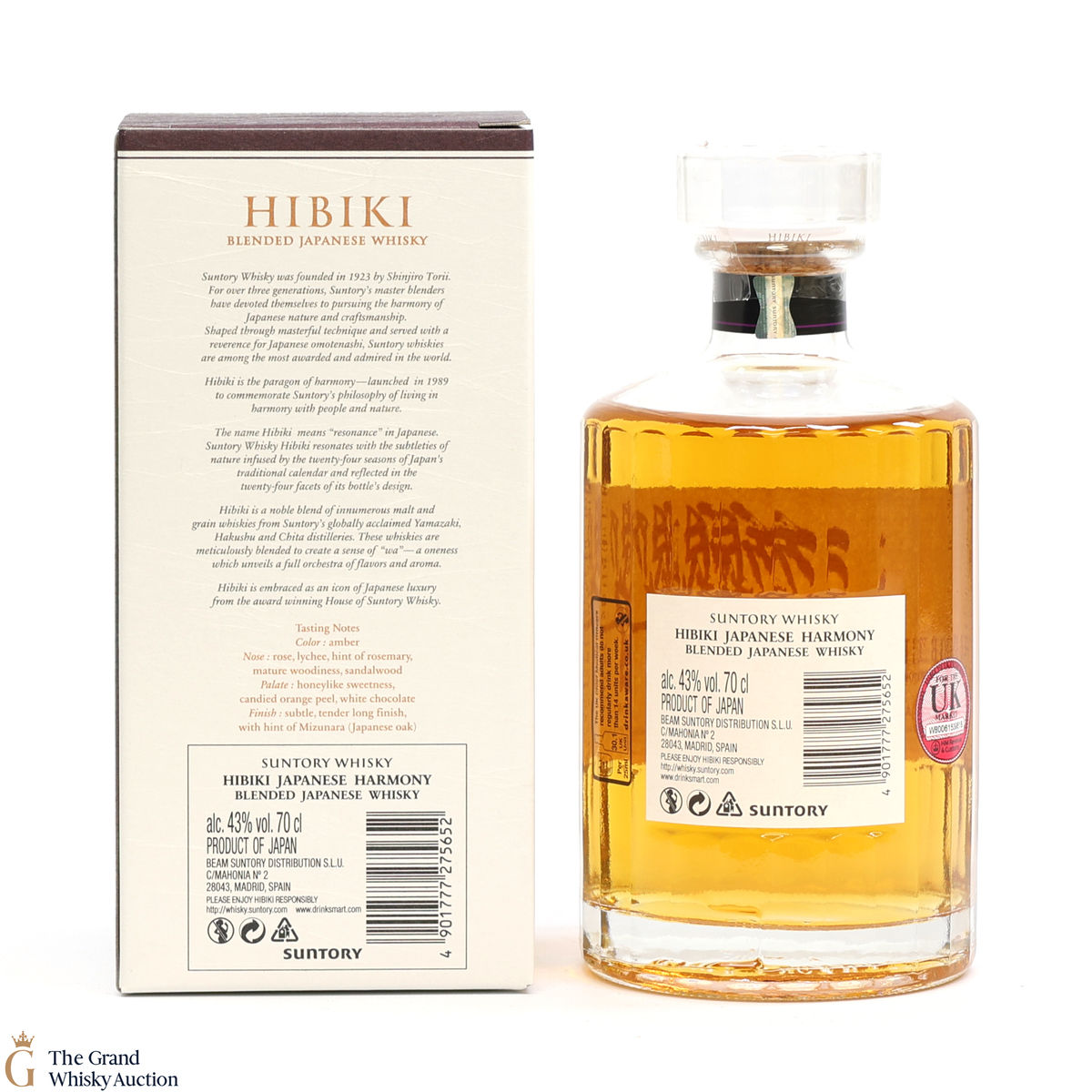 Hibiki Japanese Harmony is made with malt whiskies from the Yamazaki and Hakushu distilleries, as well as grain whisky from the Chita distillery. The whiskies are drawn from 5 different types of cask, including American white oak casks, Sherry casks and Mizunara oak casks. The blend itself was crafted by the Suntory Whisky blending team, led by Master Blender Shingo Torii. An elegant expression, with wafts of honey, orange, a herbaceous touch or two and light oak