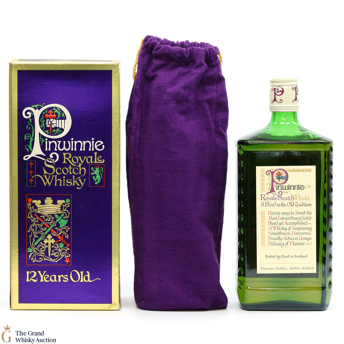 This is an eye-catching older-style bottling of Pinwinnie Whisky. Pinwinnei Royale Scotch Whisky is now discontinued and increasingly hard to find.