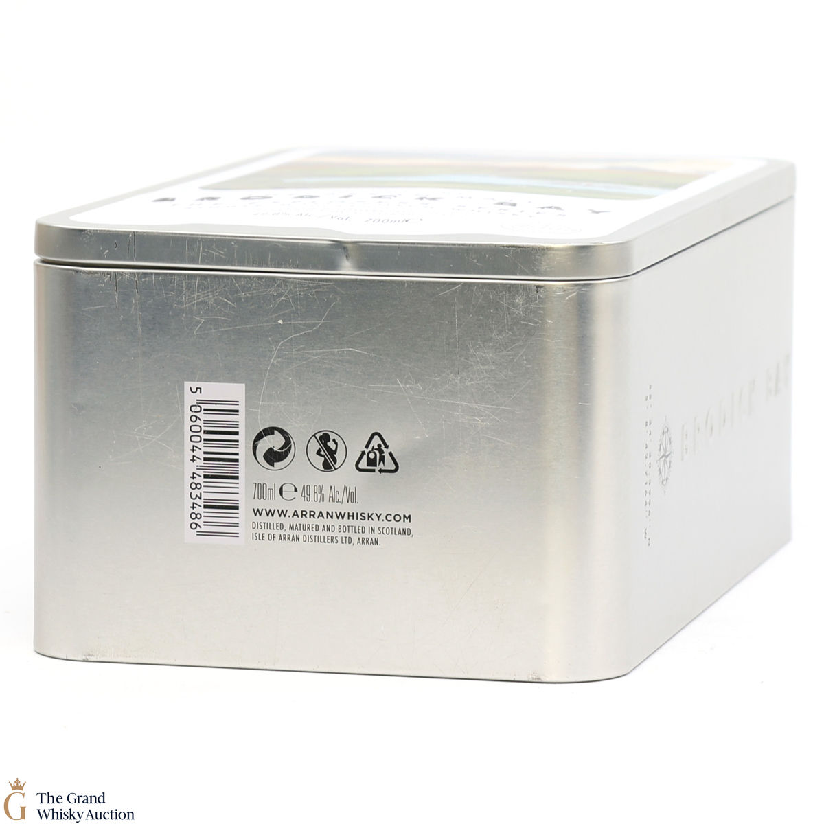 The presentation tin and the bottle label features a beautiful view from the foothills south of Brodick Bay. This is one of 9000 bottles.