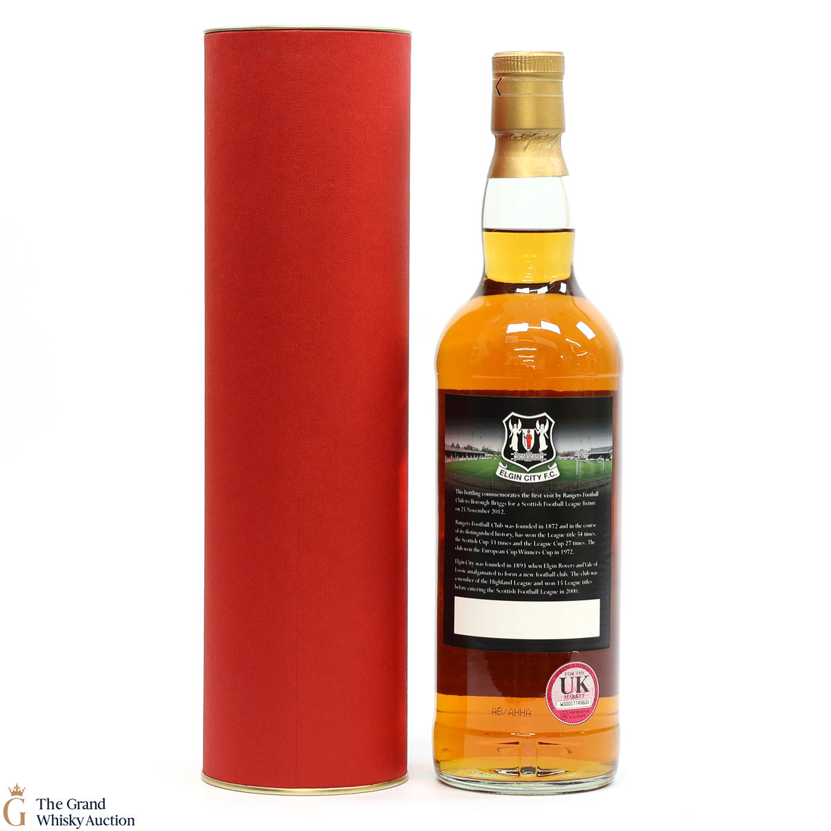 Distilled at a mystery Speyside Distillery, this single malt was bottled to commemorate the Irn Bru Scottish League Division 3 game between Elgin City and Rangers on the 25th of November 2012/13.