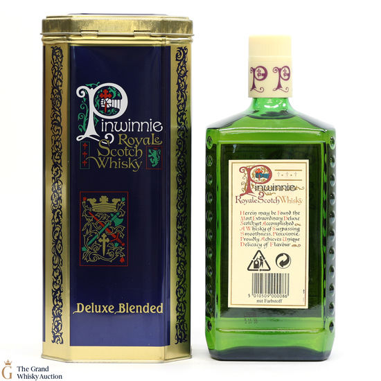 This is an eye-catching older-style bottling of Pinwinnie Royale Deluxe Blended Whisky. It is very elegantly packaged with an iconic presentation tin. It is estimated that this botting is from the 1980s - unfortunately, it is now discontinued.