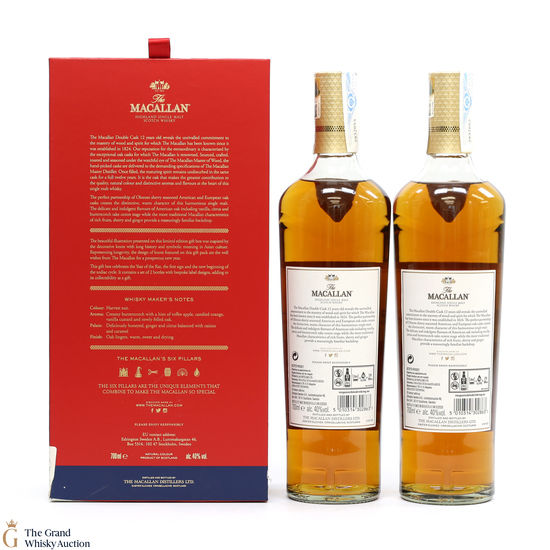 With bespoke label designs, this is an eye-catching limited-edition release twin pack containing 2 x 70cl bottles of The Macallan 12-year-old Double Cask single malt whisky.
