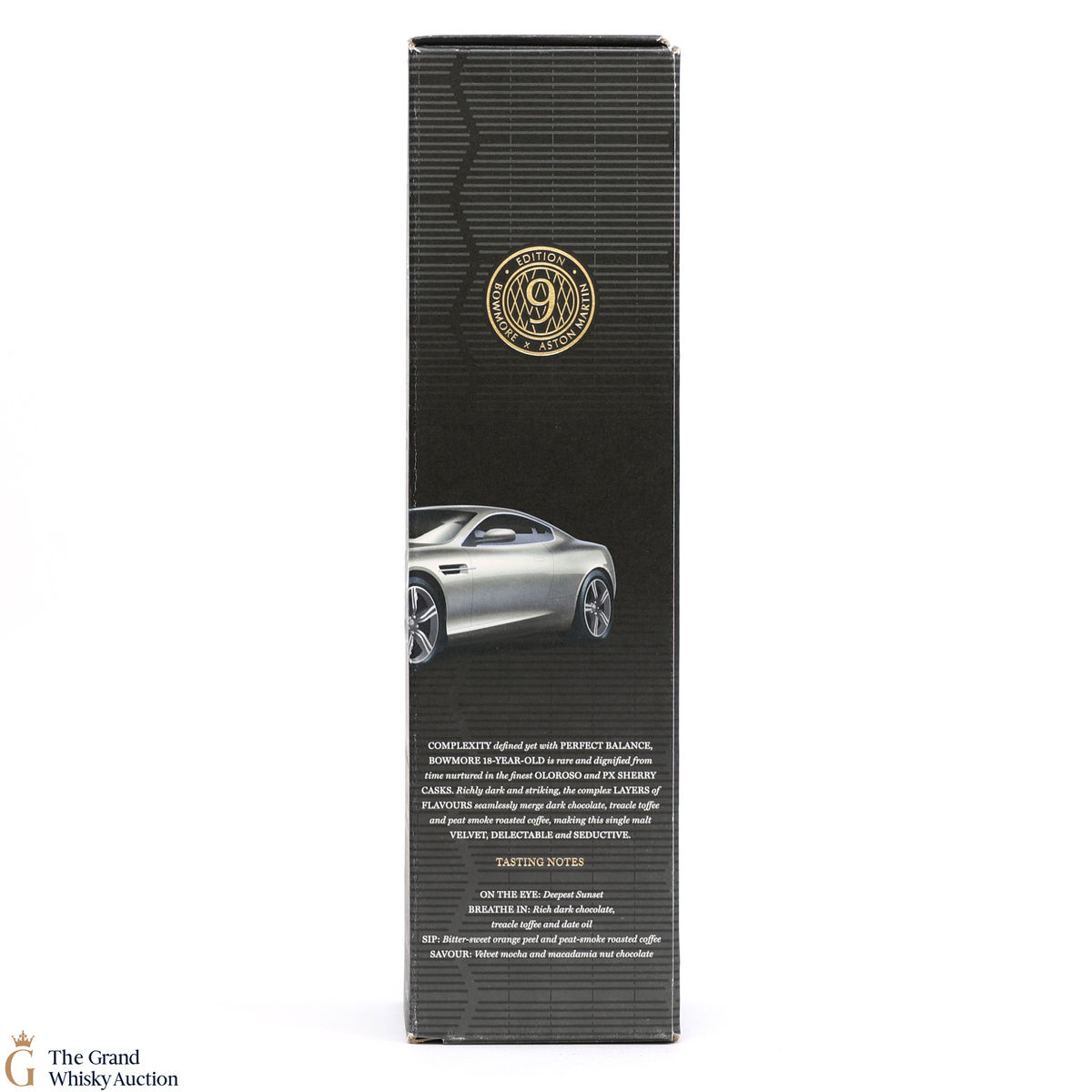 Edition 9 of the Bowmore x Aston Martin collaboration celebrates the iconic Aston Martin DB9 (2003). DB9 aligns perfectly with the balance and depth of this Bowmore 18-year-old. This single malt has a rich maturity from the depth of Oloroso & Pedro Ximénez sherry casks.