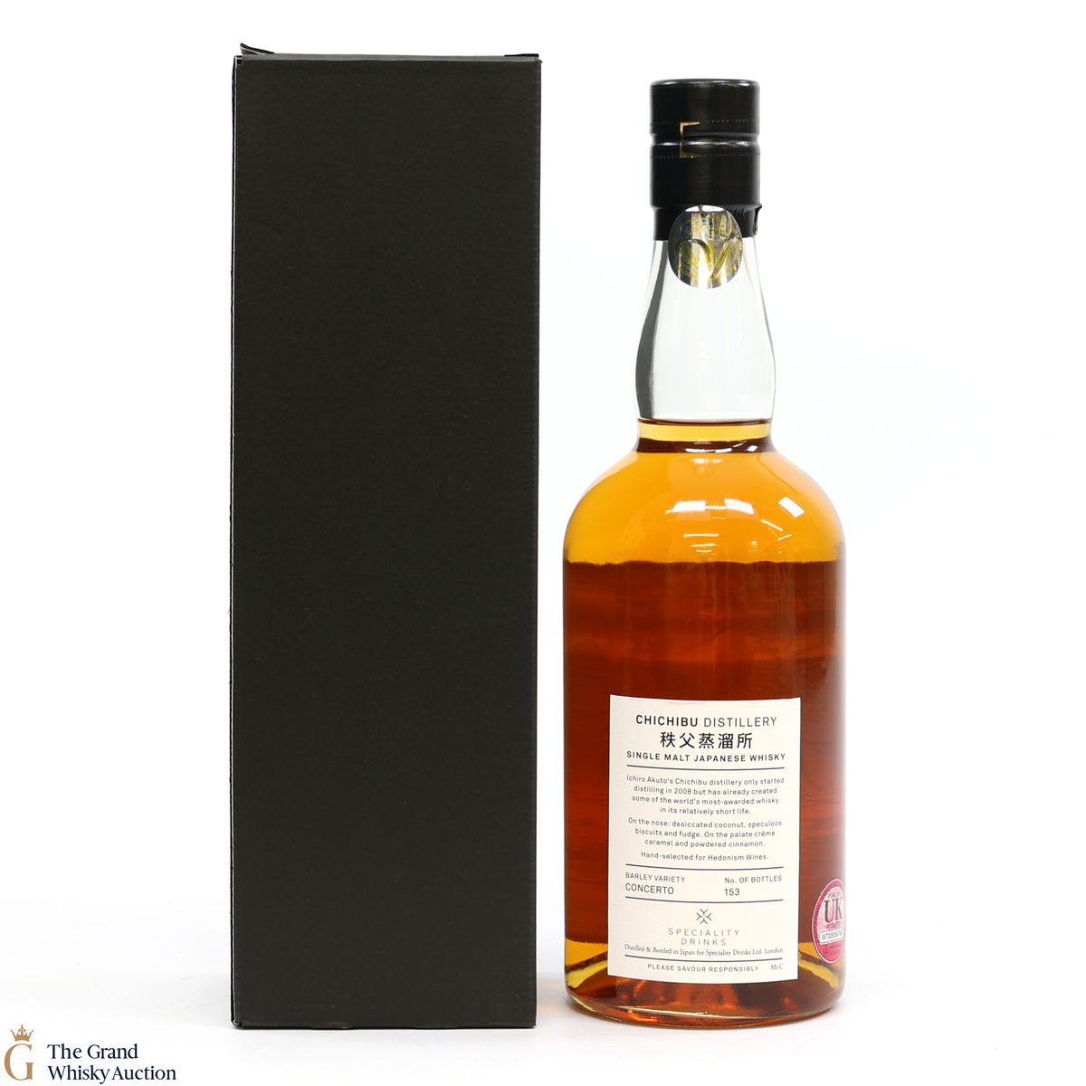 This single malt Japanese whisky release from the Chichibu distillery is hand selected for Hedonism Wines. Concerto barley was used in the making of this wonderful spirit that has matured in cask #4232 since 2015. Only 153 bottles were distilled and bottled in Japan for Speciality Drinks, London.