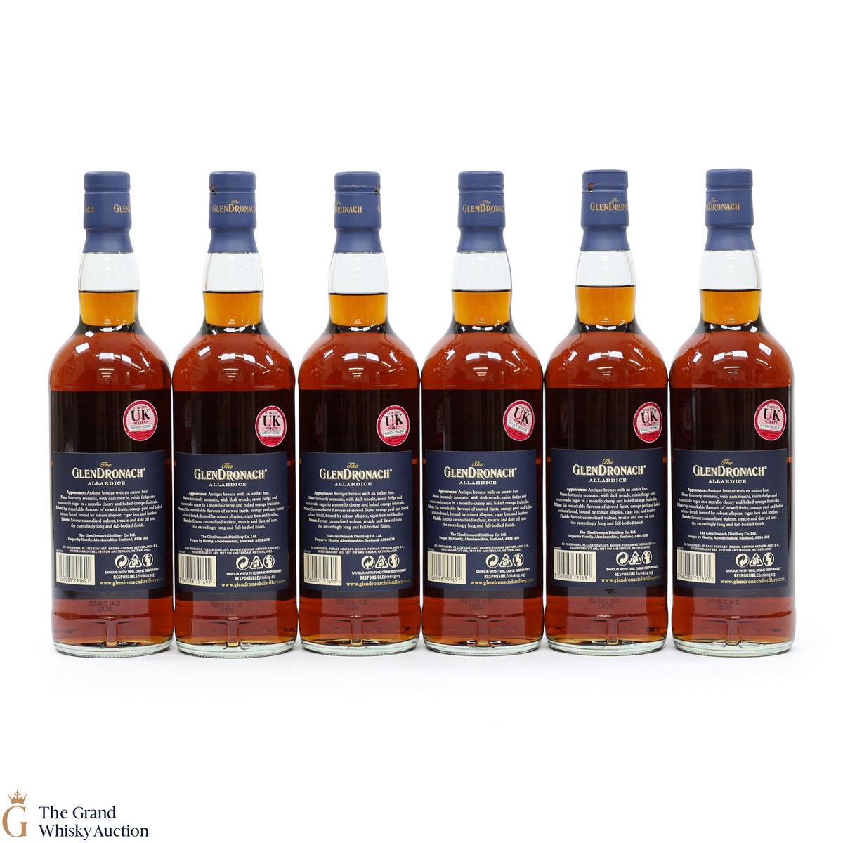 Due to the various ages of bottles and their seals, the condition of liquid is at the buyer's discretion and no claim can be lodged against failure/leakage in transit. Loss and breakage cover is available at 3% of the hammer price as standard. If the lot is not insured, no claim can be lodged against the courier or The Grand Whisky Auction for breakage or loss in transit.