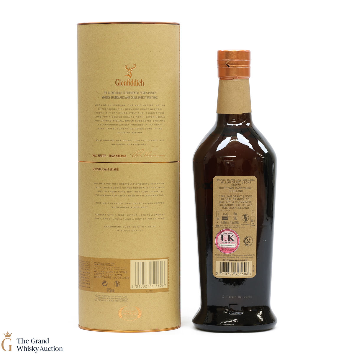 From the Speyside distillery, Glenfiddich, this is their Experimental Series. The single malt was finished in bespoke craft IPA barrels. This pioneering malt is imbued with unique zesty citrus notes and the subtle tang of fresh hops.