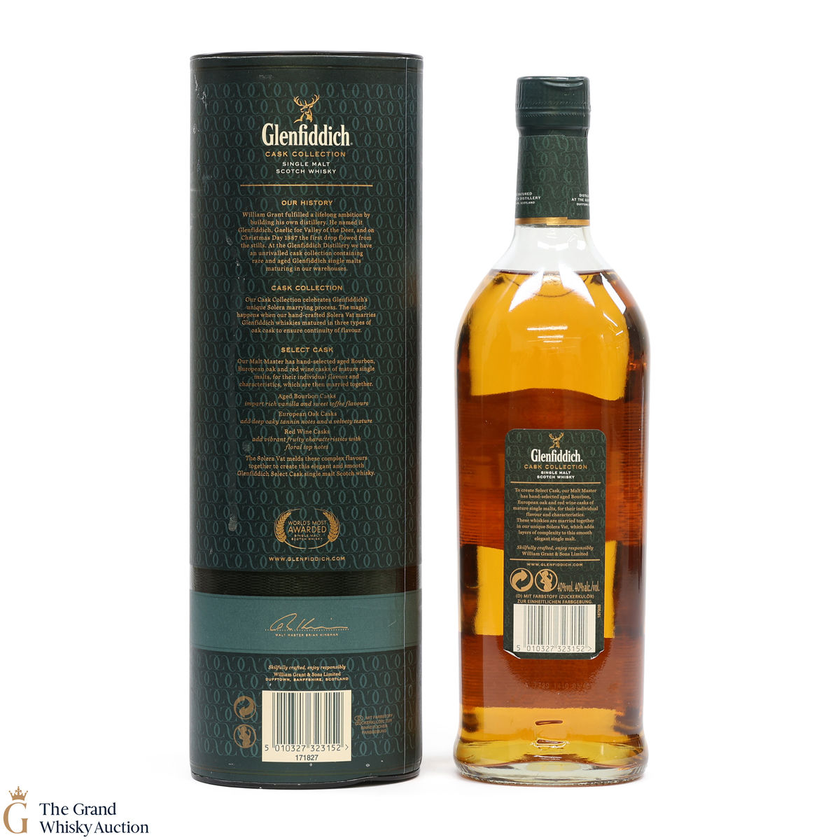 Part of a Glenfiddich's Casks Collection, Select Cask has been matured in a combination of European oak, ex-bourbon and ex-red-wine casks specially selected by malt master Brian Kinsman. It was then married in a solera vat. This is a 1 litre bottling.