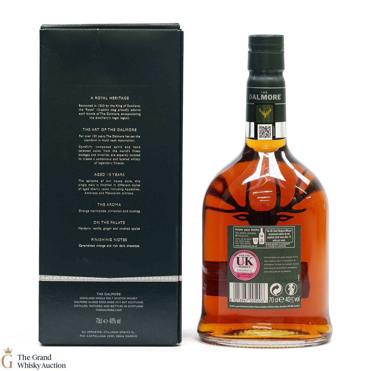 This Dalmore 15 year old was matured for 12 years in American white oak ex-bourbon casks and then a further maturation in three different sherry casks: Amoroso, Apostoles and Matusalem Oloroso.