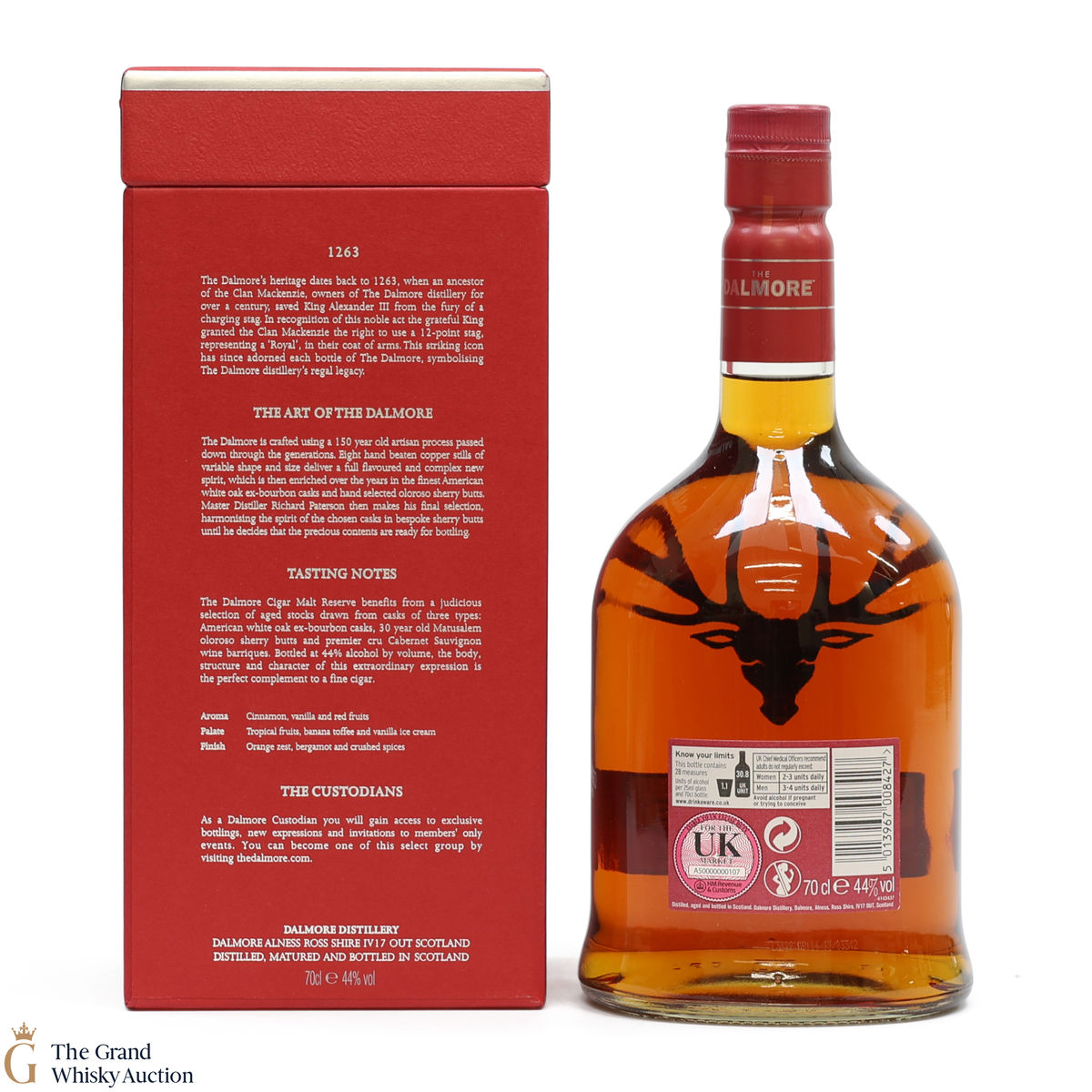 This Dalmore was matured in American white oak and oloroso sherry wood finessed in cabernet sauvignon barriques to complement a fine cigar.