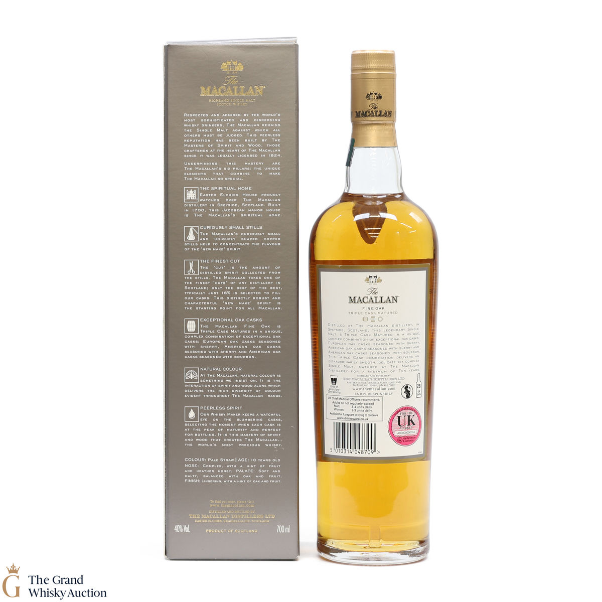 This 10-year-old single malt is part of Macallan's Fine Oak, triple cask matured range. It has been matured for ten years in three oak cask types; Europen oak seasoned with sherry, American oak seasoned with sherry and American oak seasoned with bourbon. This bottling has been discontinued.
