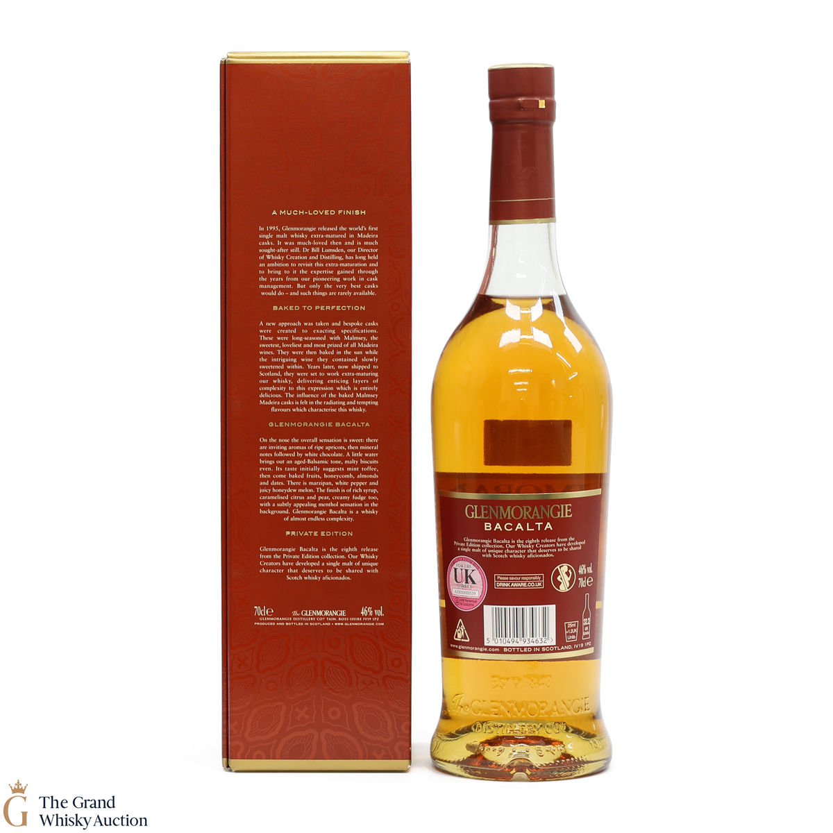 Glenmorangie Bacalta is s a single malt that is the eight release from the Private Edition collection. Matured in ex-bourbon casks and extra matured in former malmsey maderia wine casks.
