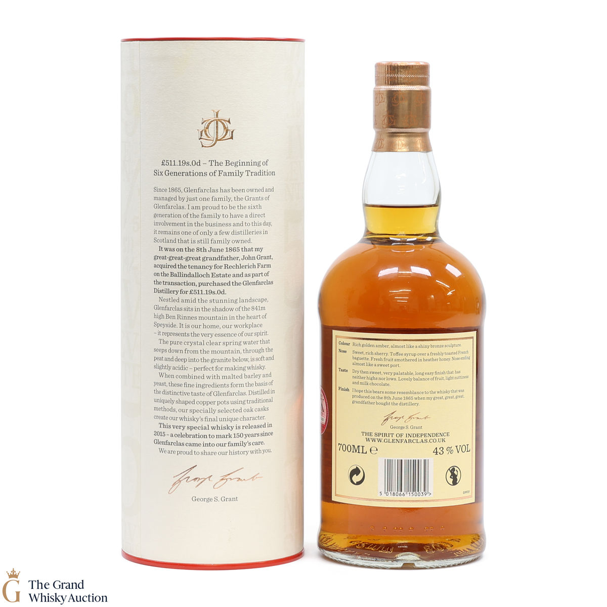 Bottled by Glenfarclas to celebrate 150th years of the distillery being owned by the Grant family.