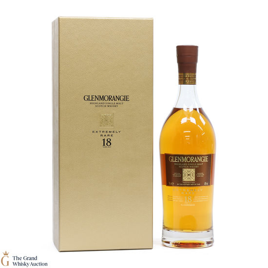 This bottle is an 18-year-old Extremely Rare, Highland single malt produced by Glenmorangie. It has been perfected by the sixteen men of Tain who have specially aged this bottle for 18 years in superior oak casks.