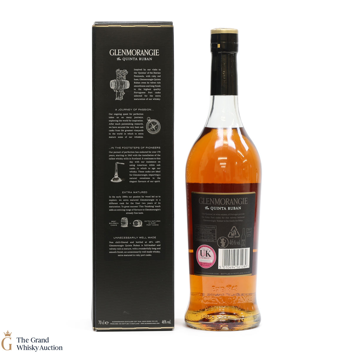 Glenmorangie Quinta Ruban is matured in bourbon casks before finishing in the finest Ruby Port casks from the "Quintas" or wine estates of Portugal. Ruban is Gaelic for Ruby.