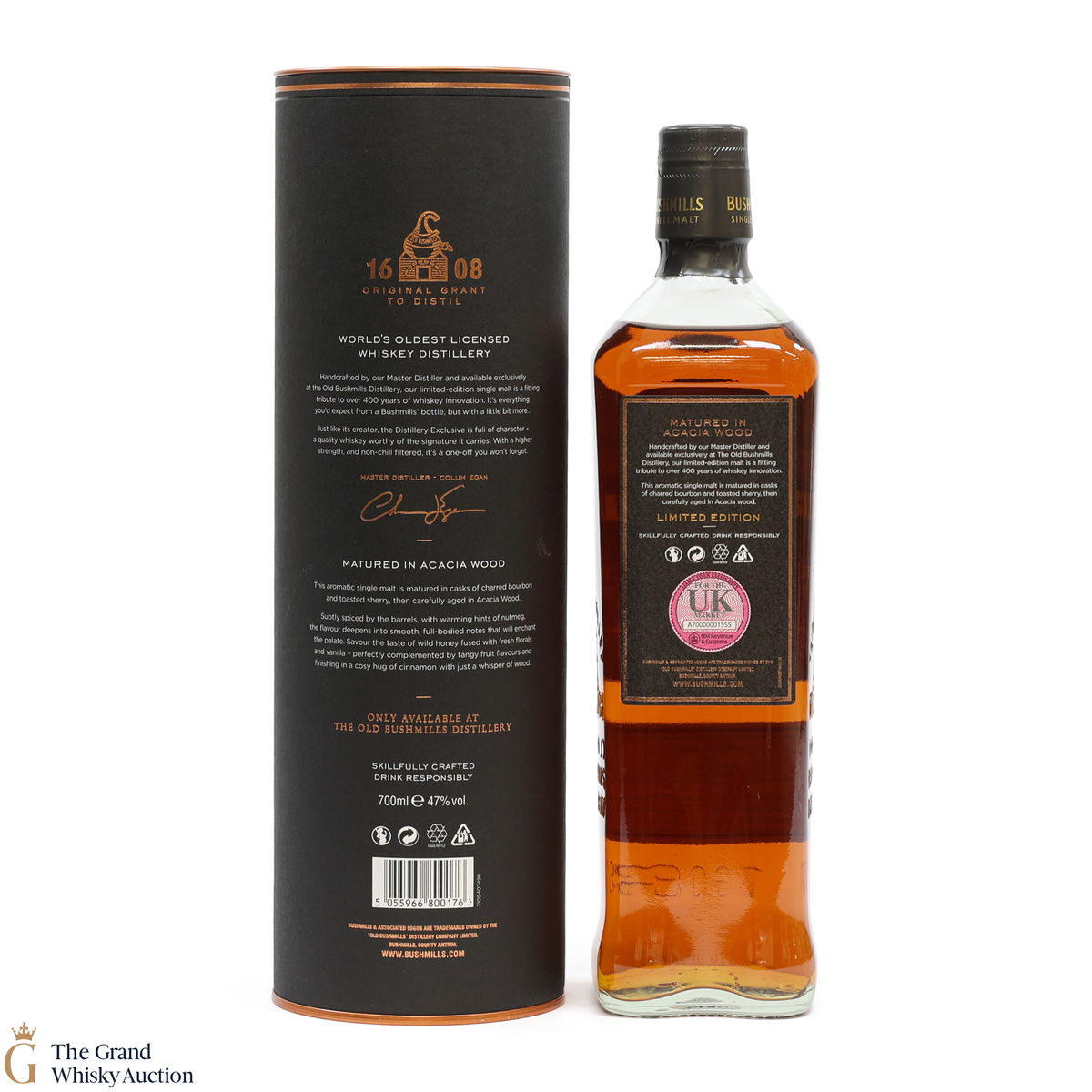A distillery exclusive from Bushmills. Distilled in 2008 and matured in Acacia wood. Acacia wood is a type of wood that is derived from the Australian native Acacia tree.