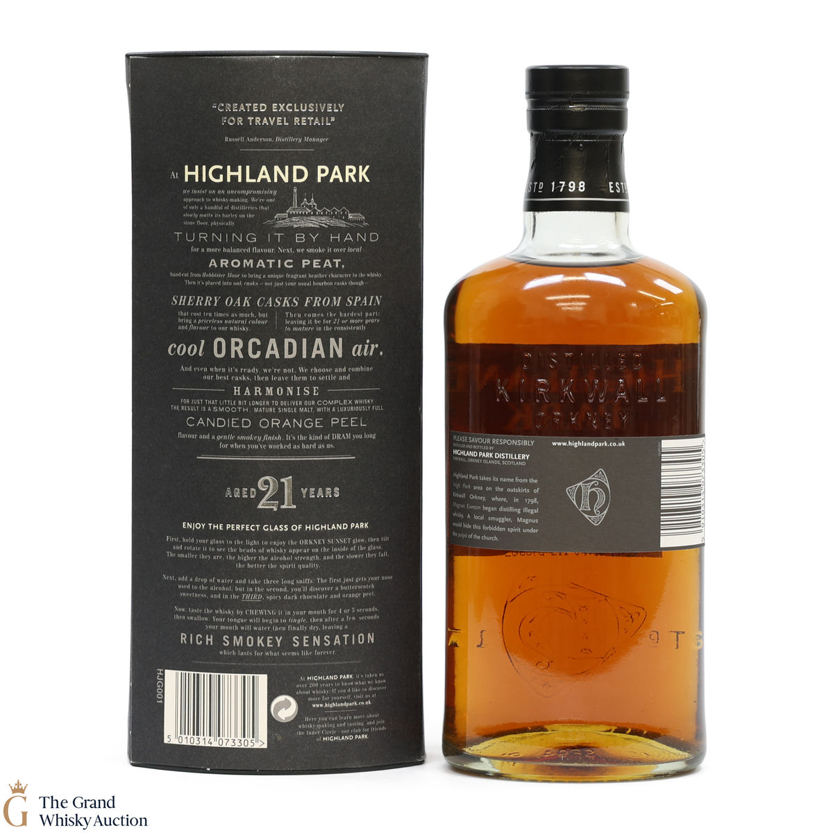 21-Year-Old Highland Park is considered one of the best expressions Highland Park produces by many. Originally created exclusively for global travel retail and duty-free markets, this whisky was named Best Single Malt of the Year at the World Whisky Awards 2009. Released in October 2007, Highland Park 21 is a full-flavoured, powerful, sweet single malt with a rich smoky finish.
